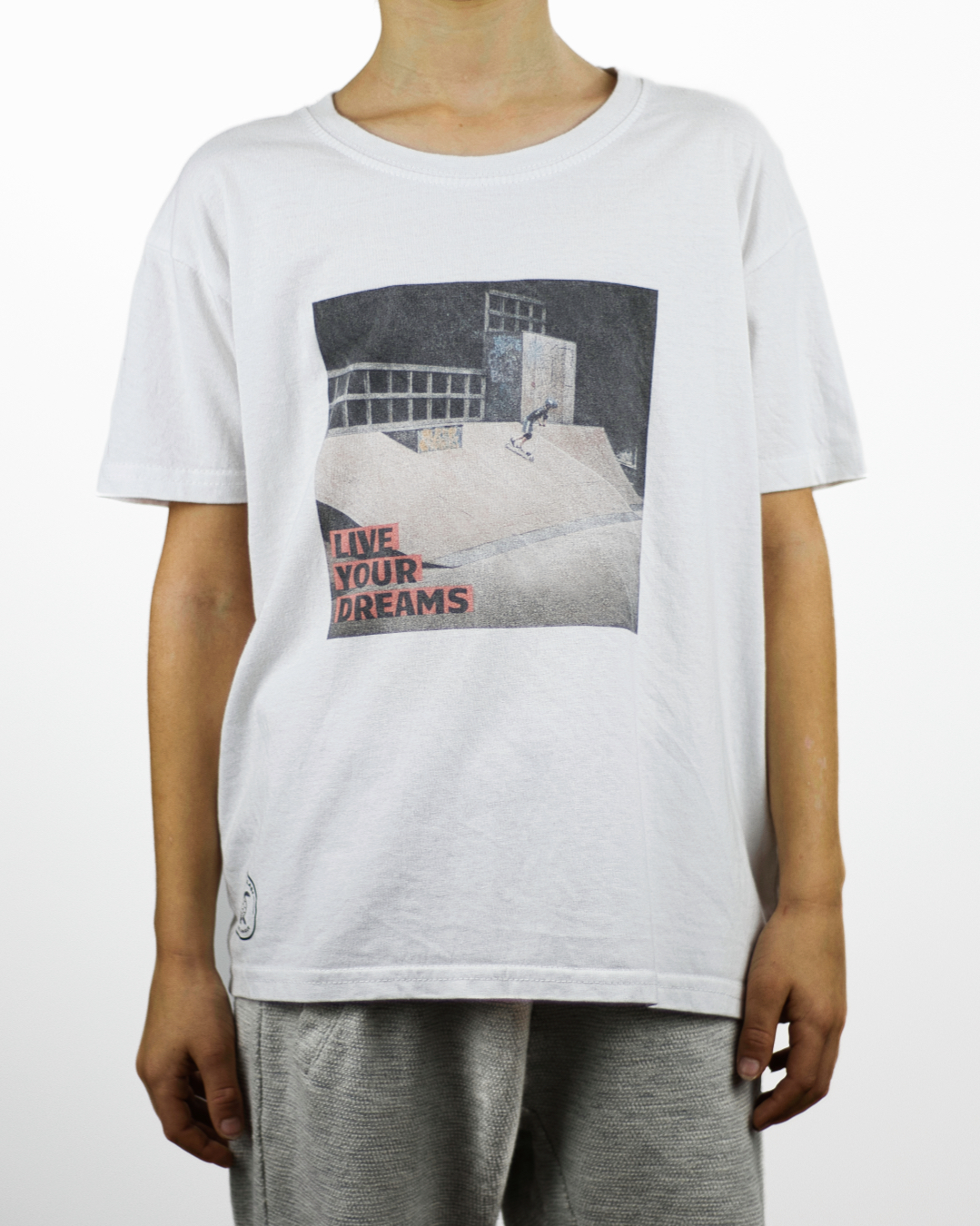 T-shirt de manga curta 100% algodão - Skatepark (Branco)