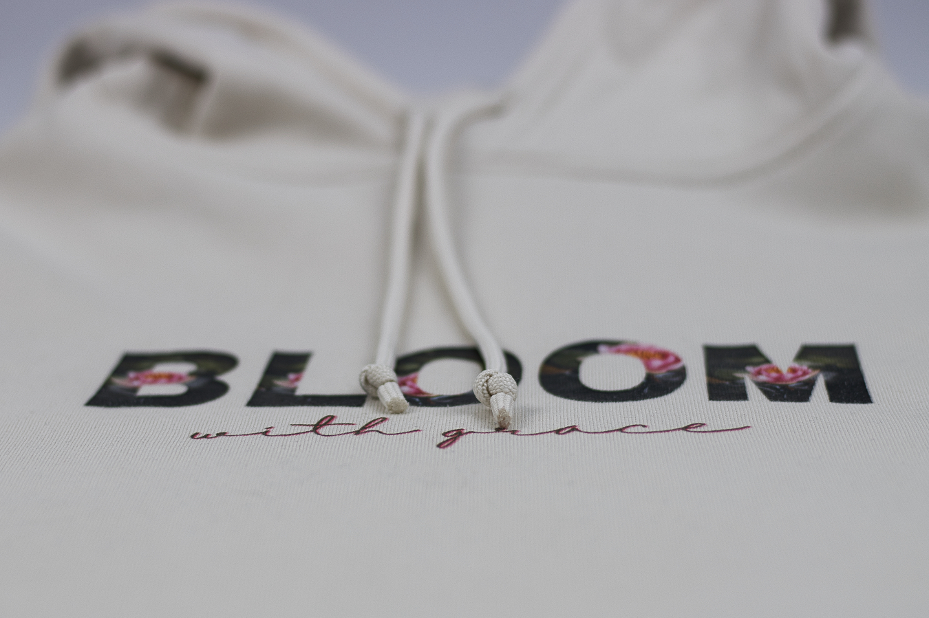 Sweatshirt com capuz "Bloom" (algodão orgânico) - Creme