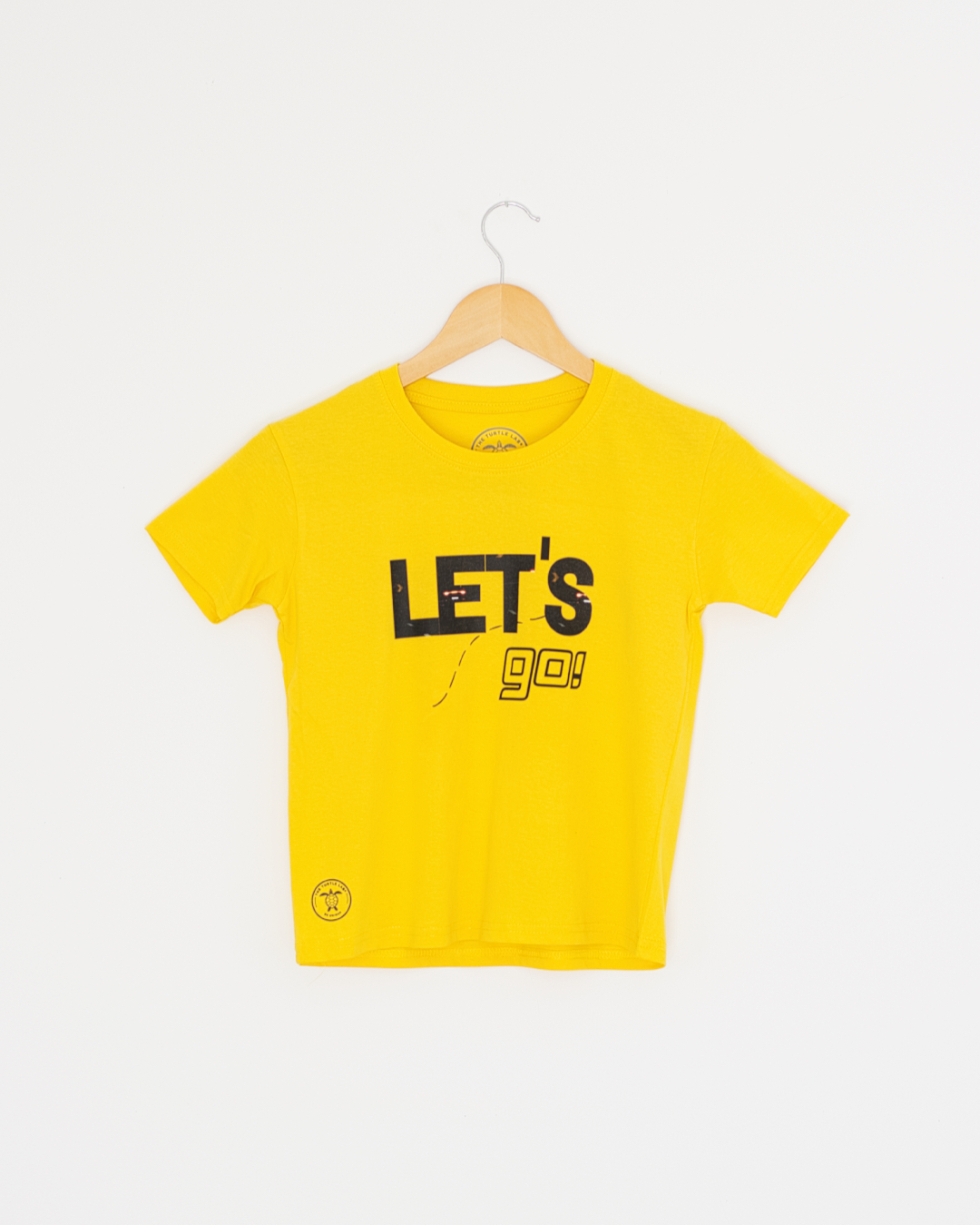 - Cor: Amarelo ou Cinza - Designúnico "Let's Go" - Malha ultra-confortável - Estampada na parte frontal - Mangas curtas - Tecido suave e confortável