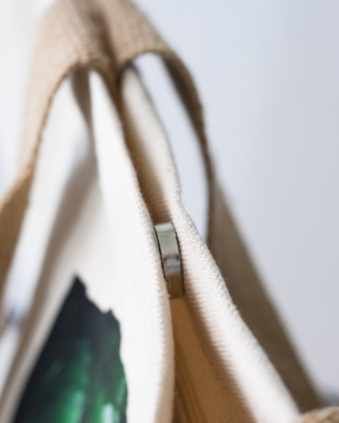 • saco de tecido cru com rebites metálicos prateados na borda